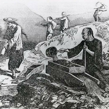 The Chinese were the most efficient placer miners during the California gold rush. Their use of the rocker, waterwheel and bucket-pulley system allowed them to rework claims thought to be unproductive and thus abandoned by other miners.